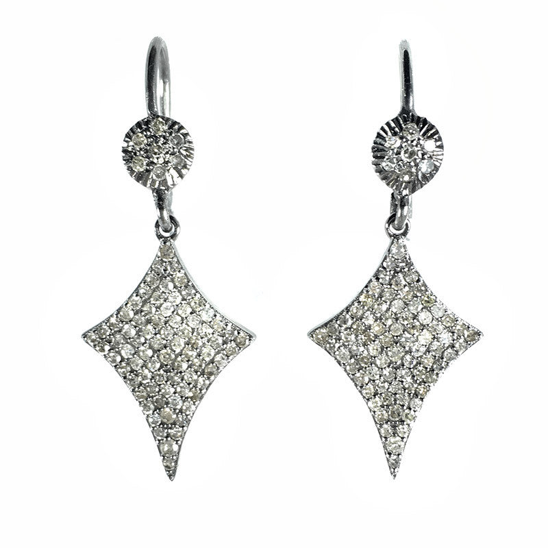 Pavé diamond daggers dance beneath wires adorned with diamond disc accents. Sterling silver.