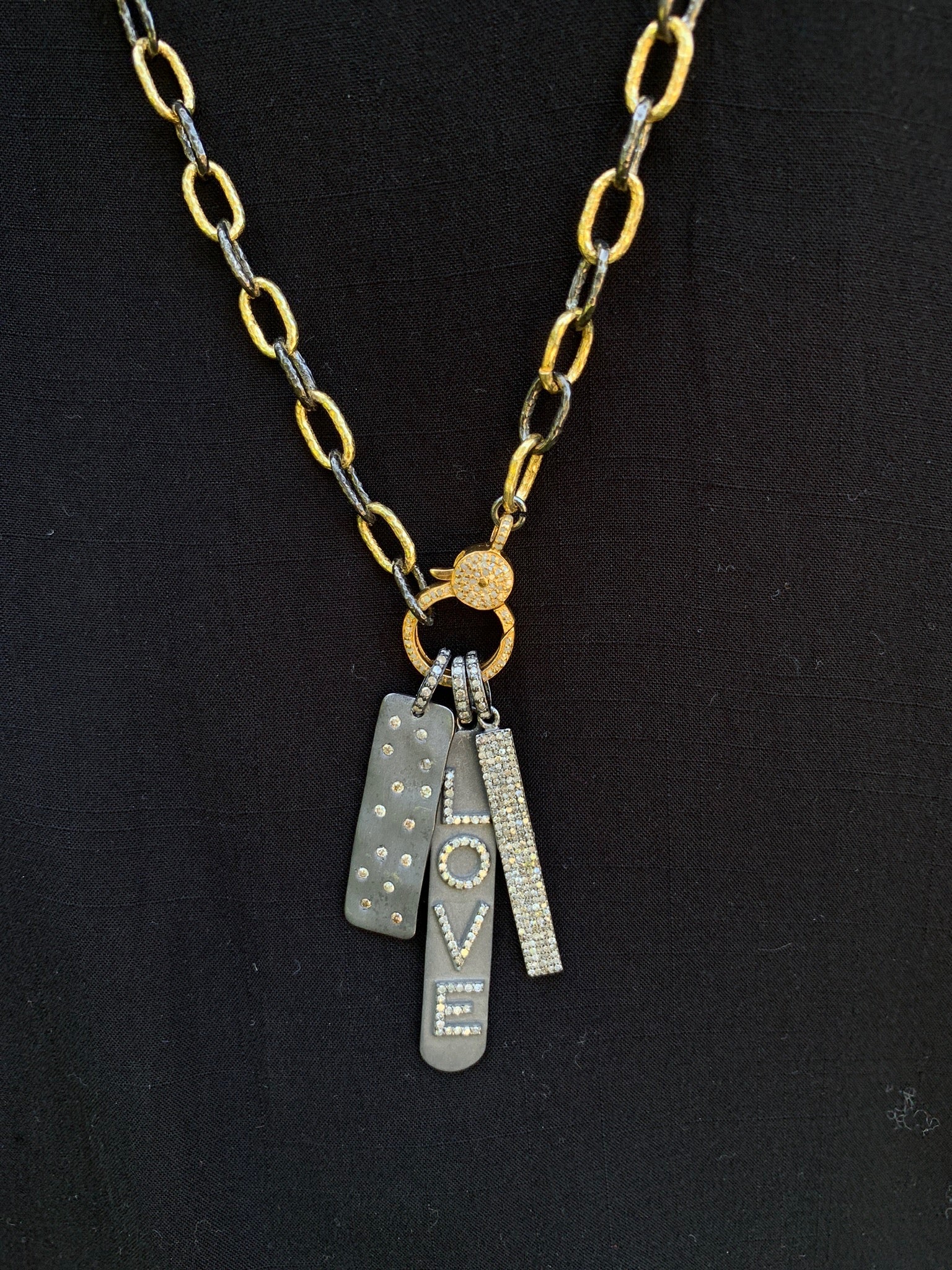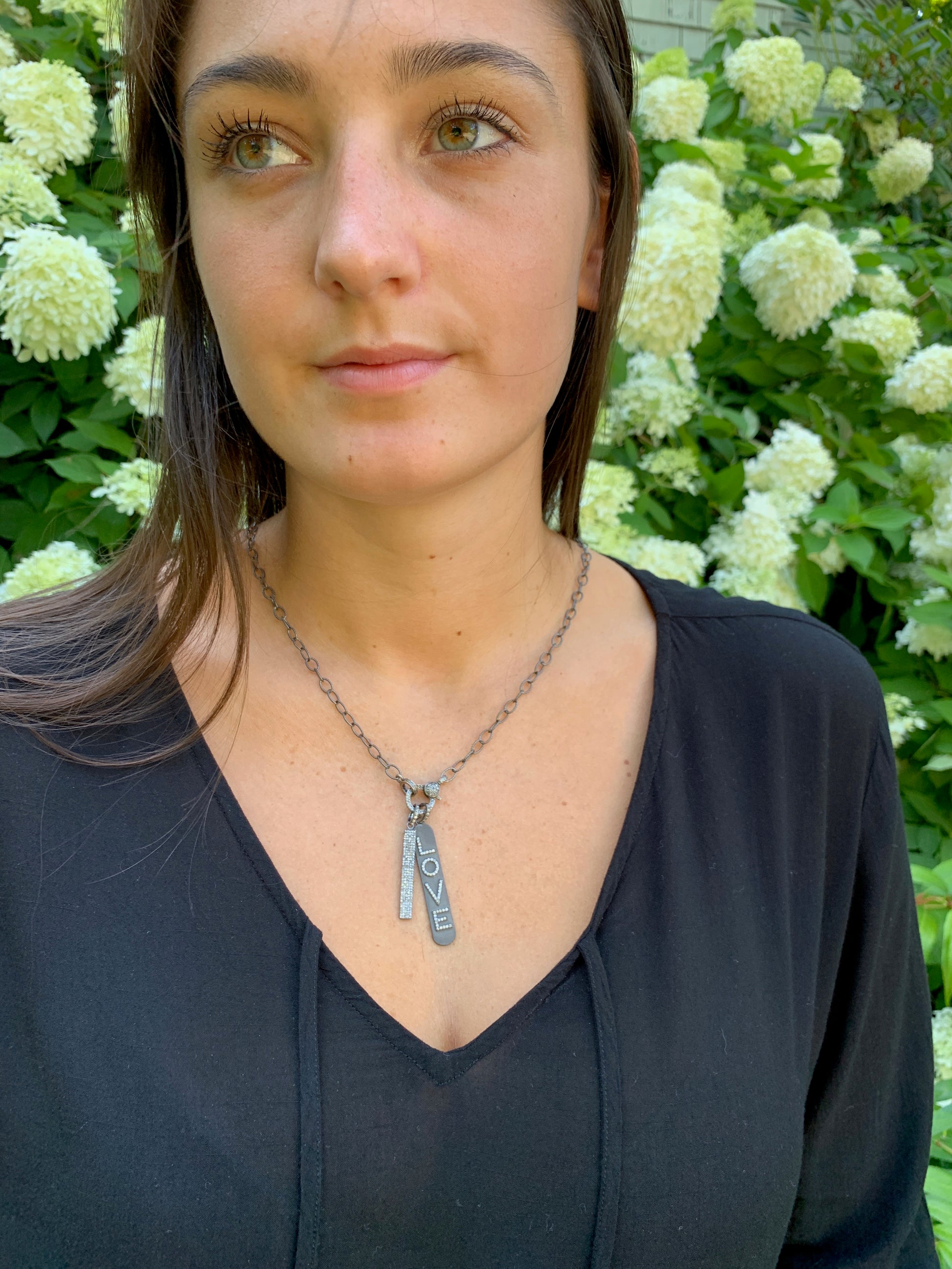Dazzling diamond pavé bar set on sterling silver. Pair charm with additional charms for an even more unique look. Option of 44mm or 27mm length, both with five rows of diamonds.